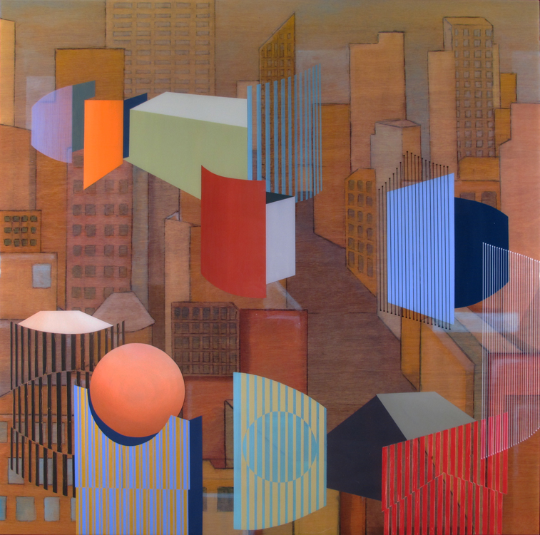 “Citywide” 47″ x 41″ acrylic and epoxy on panel, 2014