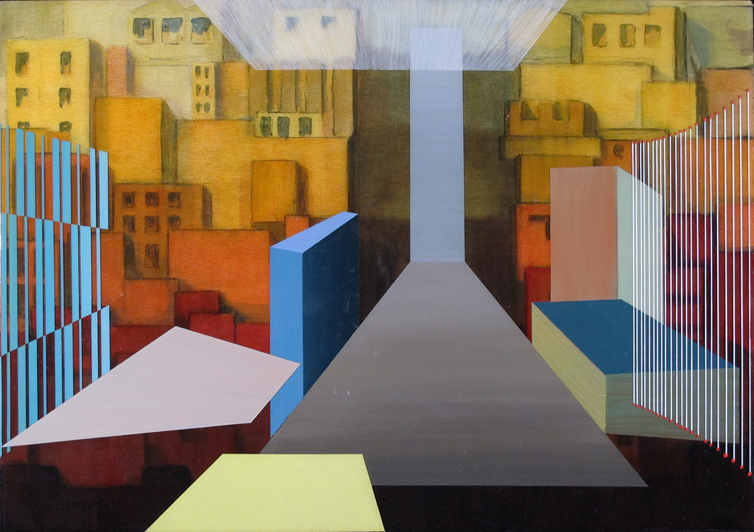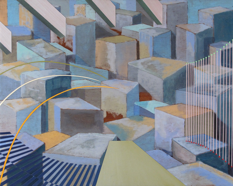 “Tioga Court” 23″ x 17″ acrylic and epoxy on panel, 2014