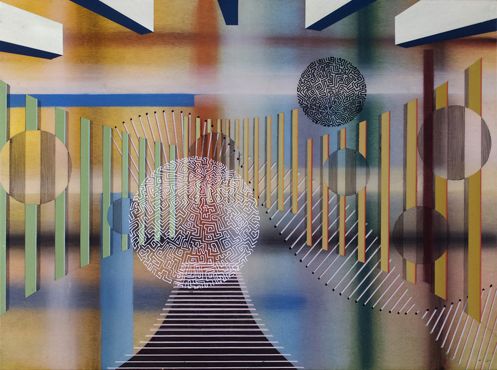 “On the Perspective of Being Wrong” 34″ x 48″ acrylic, enamel, and poly on panel
