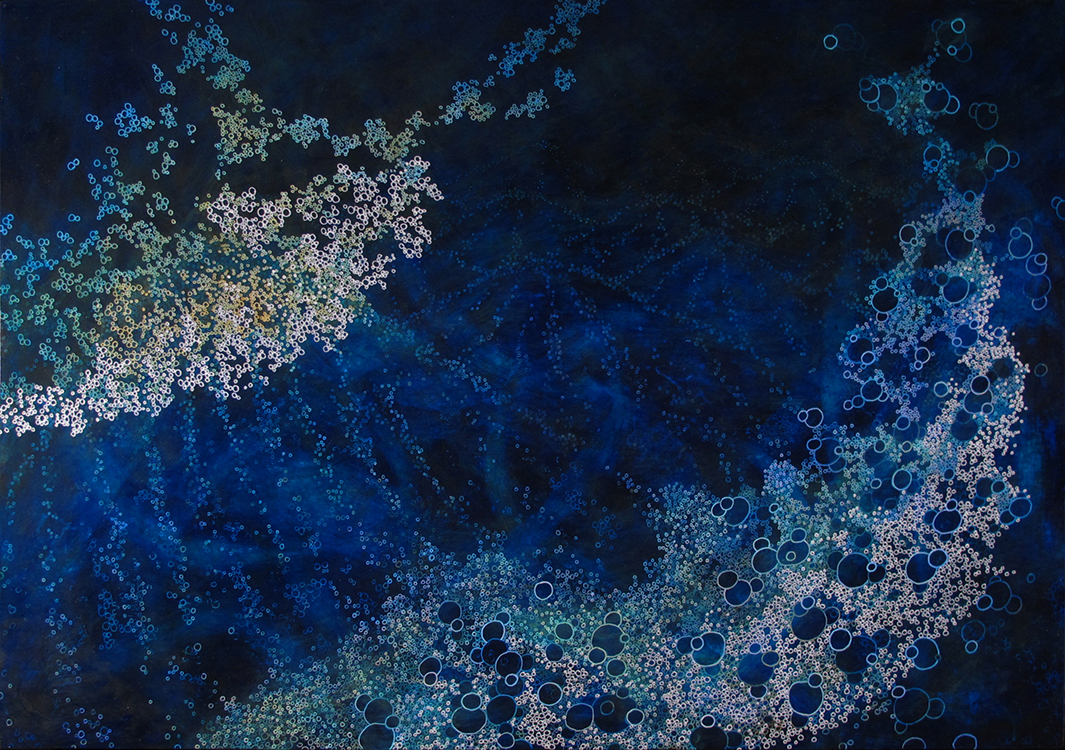 “Dusk in the Blink of an Eye” 48″ x 41″ acrylic, enamel, and poly on panel