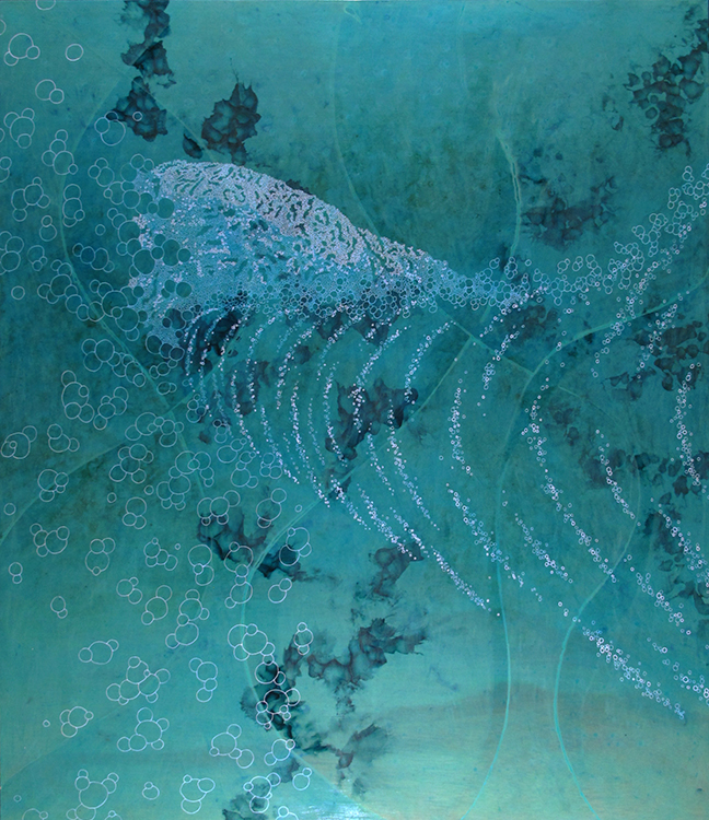 “Wake” 24″ x 34″ acrylic, enamel, and poly on panel