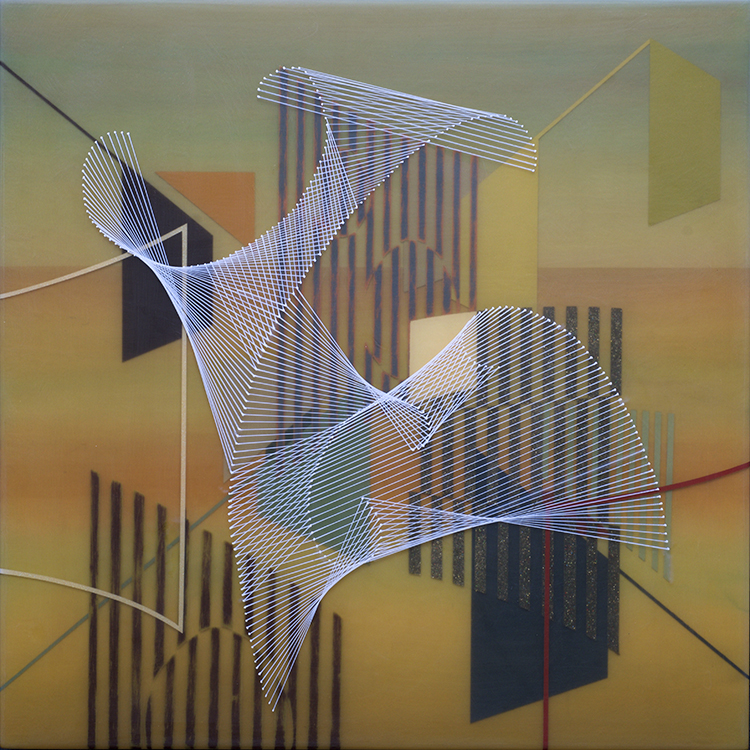 In this series I bury the white lines into the background using many layers of transparent color. As they get deeper into the layers of color they fuse with the dark matter background.