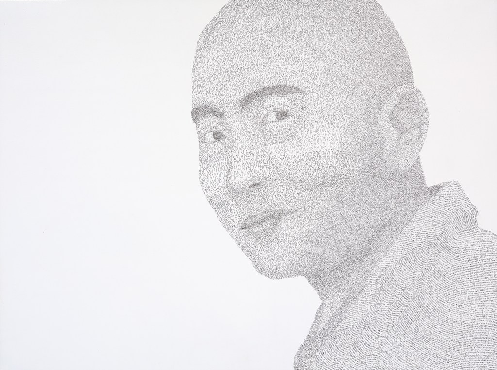 The words used to make the marks that compose this portrait are the text from the Immigration Act of 1917, which barred most immigration from Asia. The late 19th century saw the rise of “Yellow peril” the perceived threat of Asian societies replacing the American identity which led to a series of immigration acts in the late 1800s early 1900s. There was the Chinese exclusion act of 1882, the Gentlemen’s Agreement of 1907, the Immigration Act of 1917, and the Immigration act of 1924, that were aimed exclusively at Asian immigration.