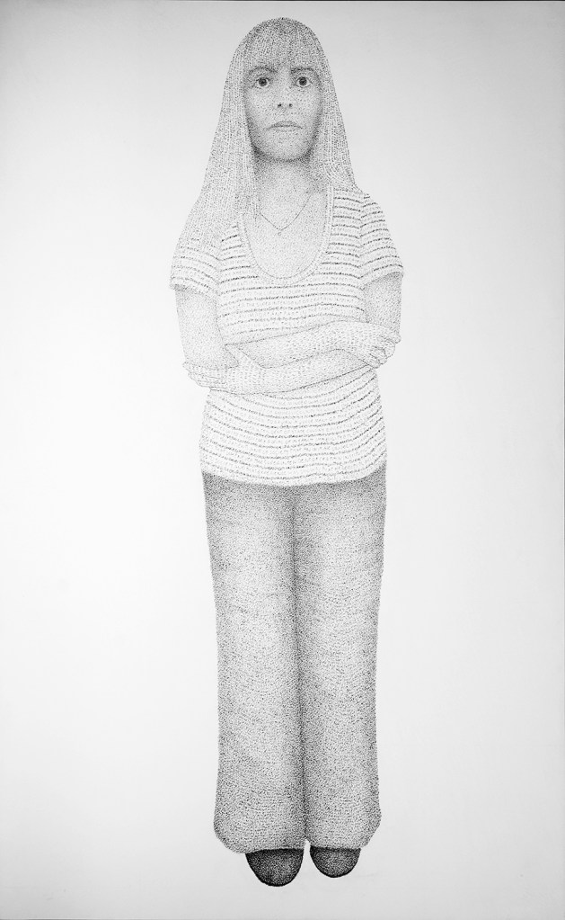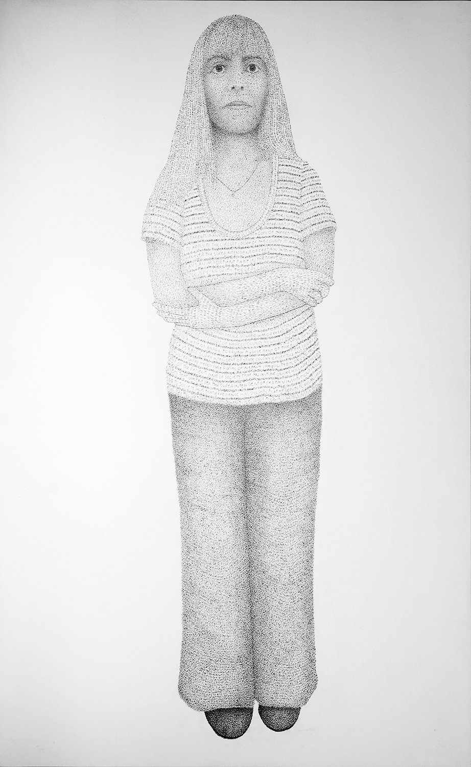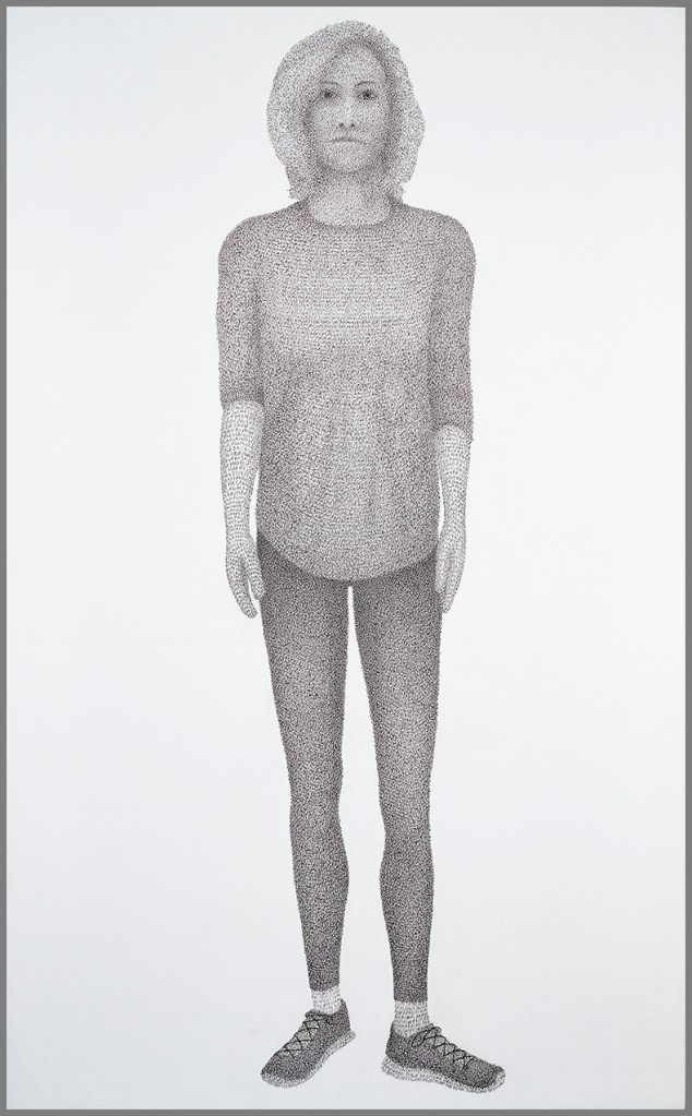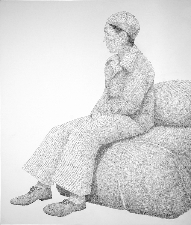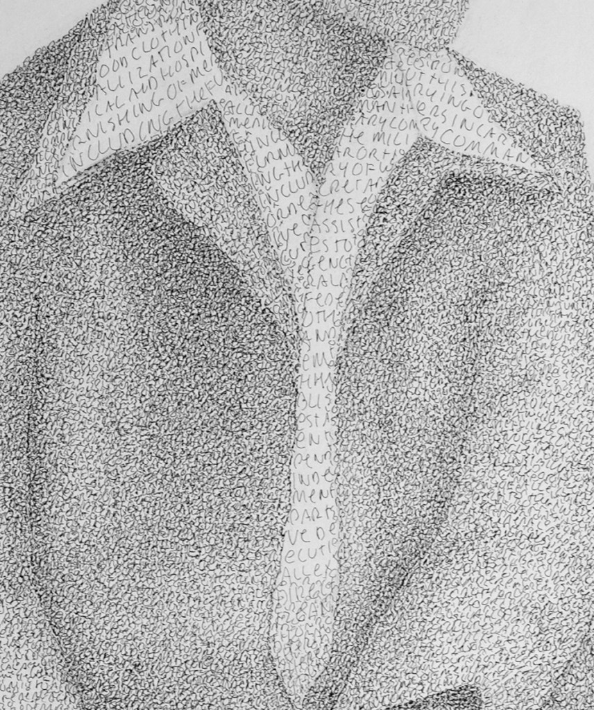 I will be showing 2 pieces from my new ink on panel portrait series that examine the current social and political environment and put contemporary elements in context with historical events. I use the text from government documents or declarations from the past and use those words as my mark to make portraits of people standing strong in the face of government oppression.