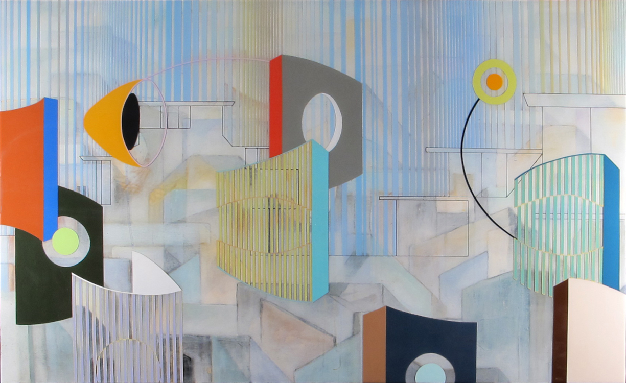 “Overland Over the 10″ 33″ x 27” acrylic and epoxy on panel, 2013