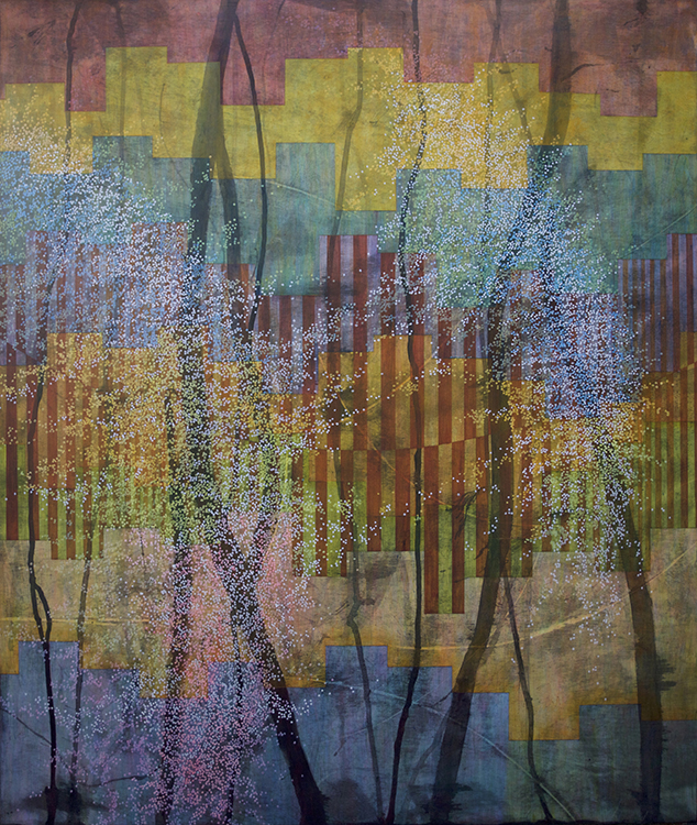 “Time and Memory” 36″ x 47″ acrylic, enamel, poly on panel, 2017