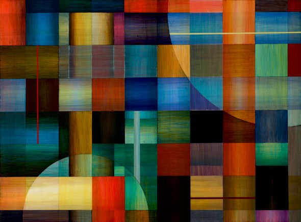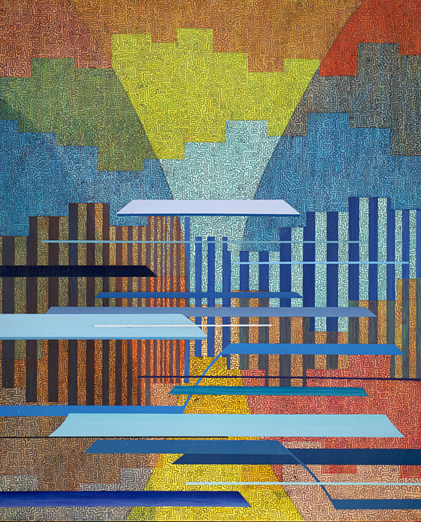 “Lines Drawn to Yesterday” 44″ x 56″ acrylic, enamel, poly on panel, 2017