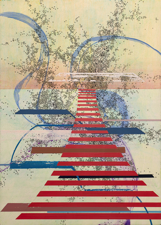 “Transitory Moments of Indiscriminate Depth” 40″ x 34″ acrylic, enamel, poly on panel, 2017