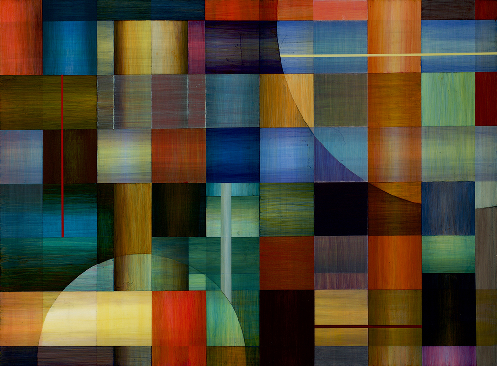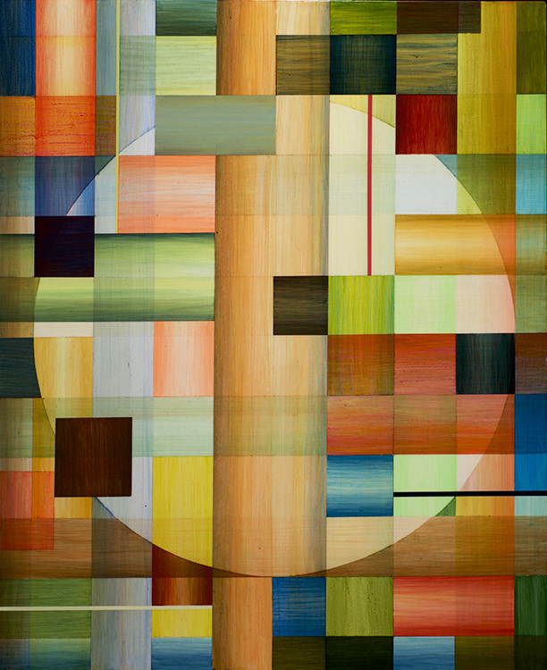 “Transient Layers and a Quicking Pulse” 20″ x 16″ acrylic, enamel, poly on panel, 2017